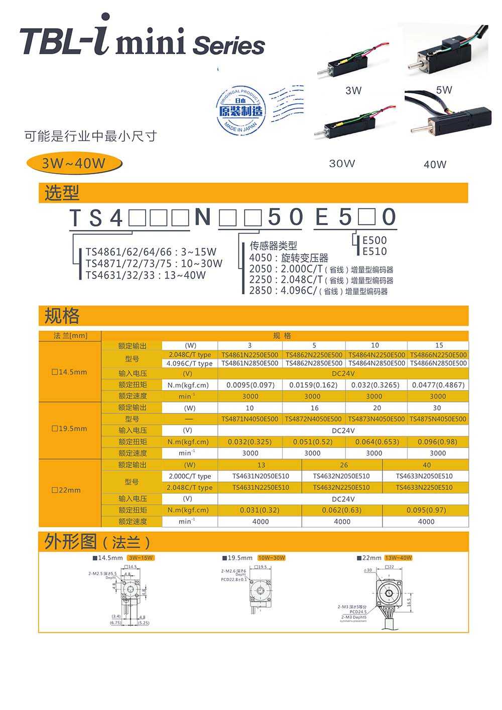 所屬型號:TBL-imini 所屬品牌:多摩川 所屬分類:伺服電機 應用領域:紡織行業 電梯行業 機床行業